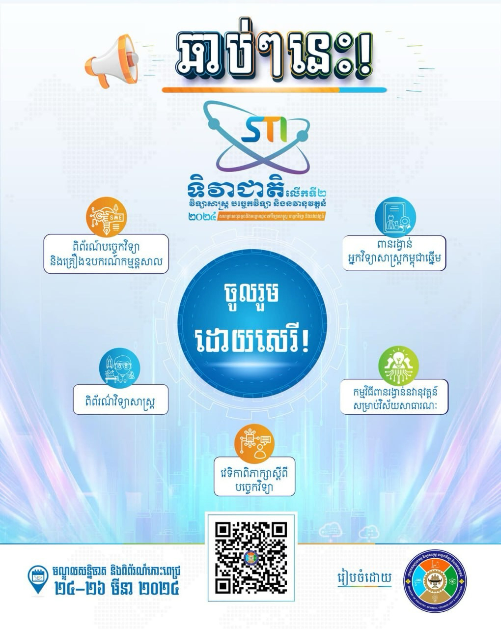 These Terms and Conditions govern your registration for the National Day of Science, Technology, and Innovation organized by the Ministry of Industry, Science, Technology, and Innovation in Cambodia. By completing the registration process, you agree to abide by these terms and conditions.